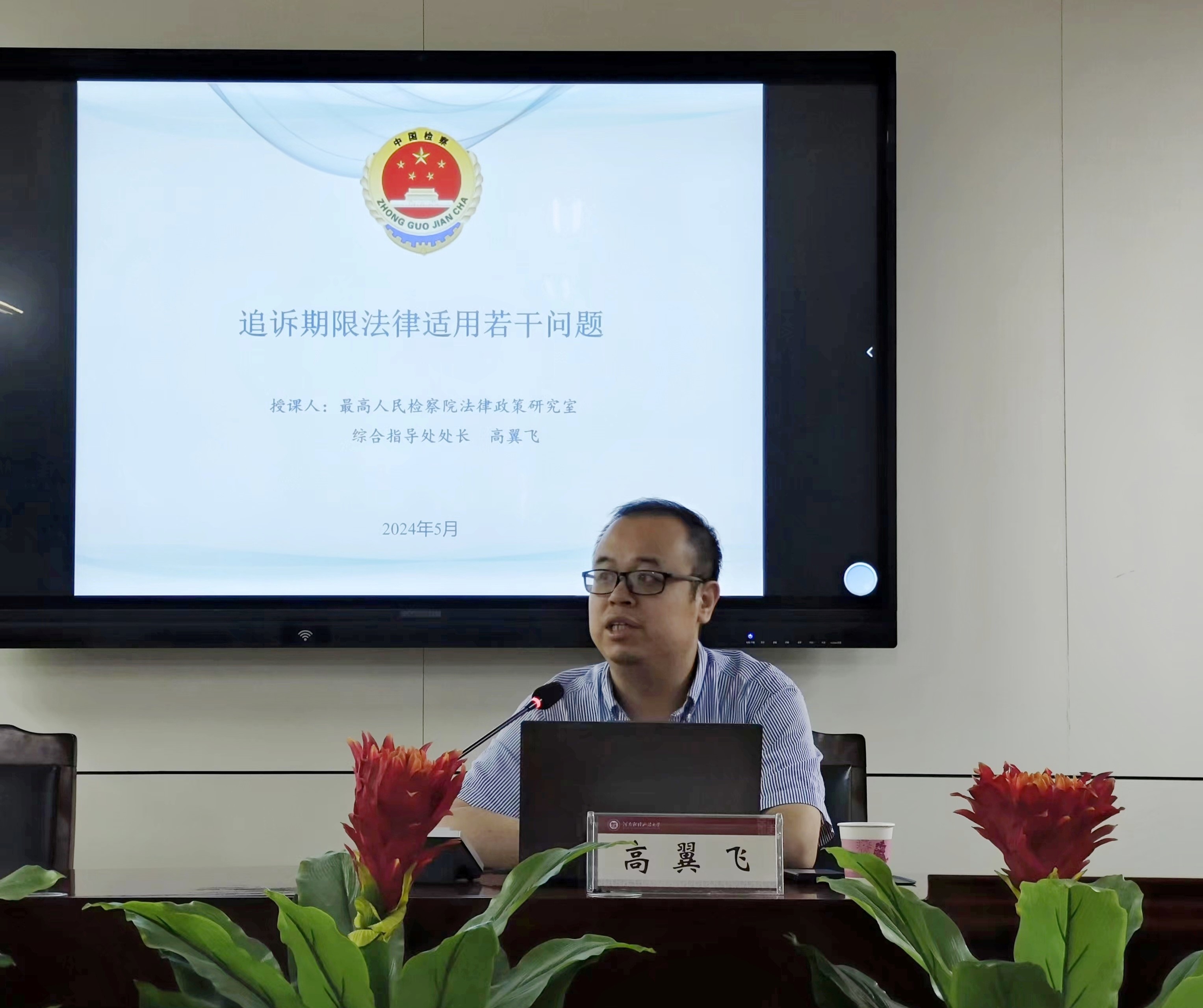 5月28日上午,最高人民检察院法律政策研究室综合指导处处长高翼飞同志应邀来我校作学术报告,bevictor伟德(纪检监察学院)部分教师、研究生聆听了报告。报告会由bevictor伟德(纪检监察学院)副院长陈在上教授主持。