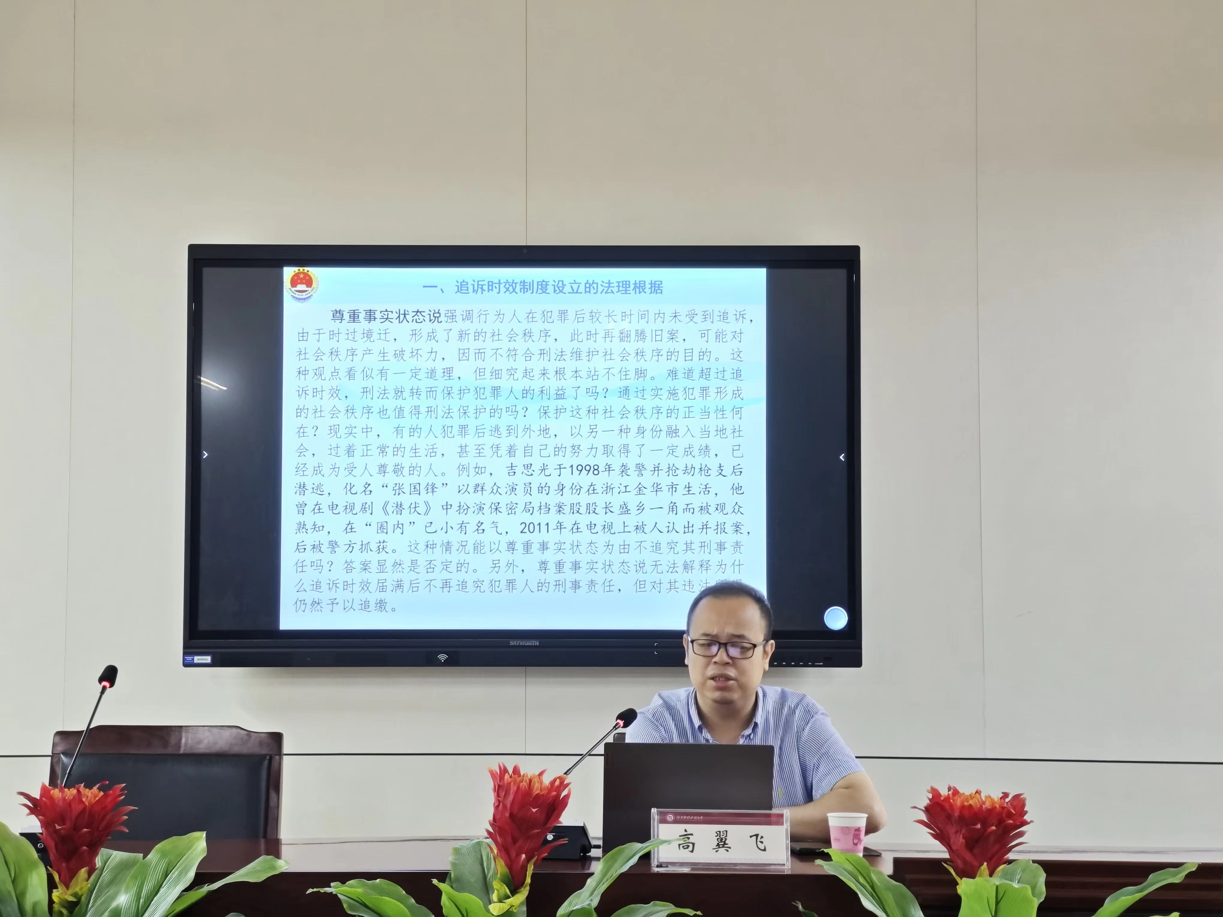 高翼飞处长以“追诉期限法律适用若干问题”为主题,分别从追诉时效制度设立的法理根据、“追诉”的含义和追诉时效的终止点、如何理解“不受追诉期限的限制”、追诉时效的起算与重新计算的时间节点、追诉时效的时间效力、追诉权的再度行使应受追诉时效限制以及追诉期限与诉讼期限之间的对立统一关系等七个方面,对追诉期限法律适用若干问题进行了深入翔实而又生动的阐述。