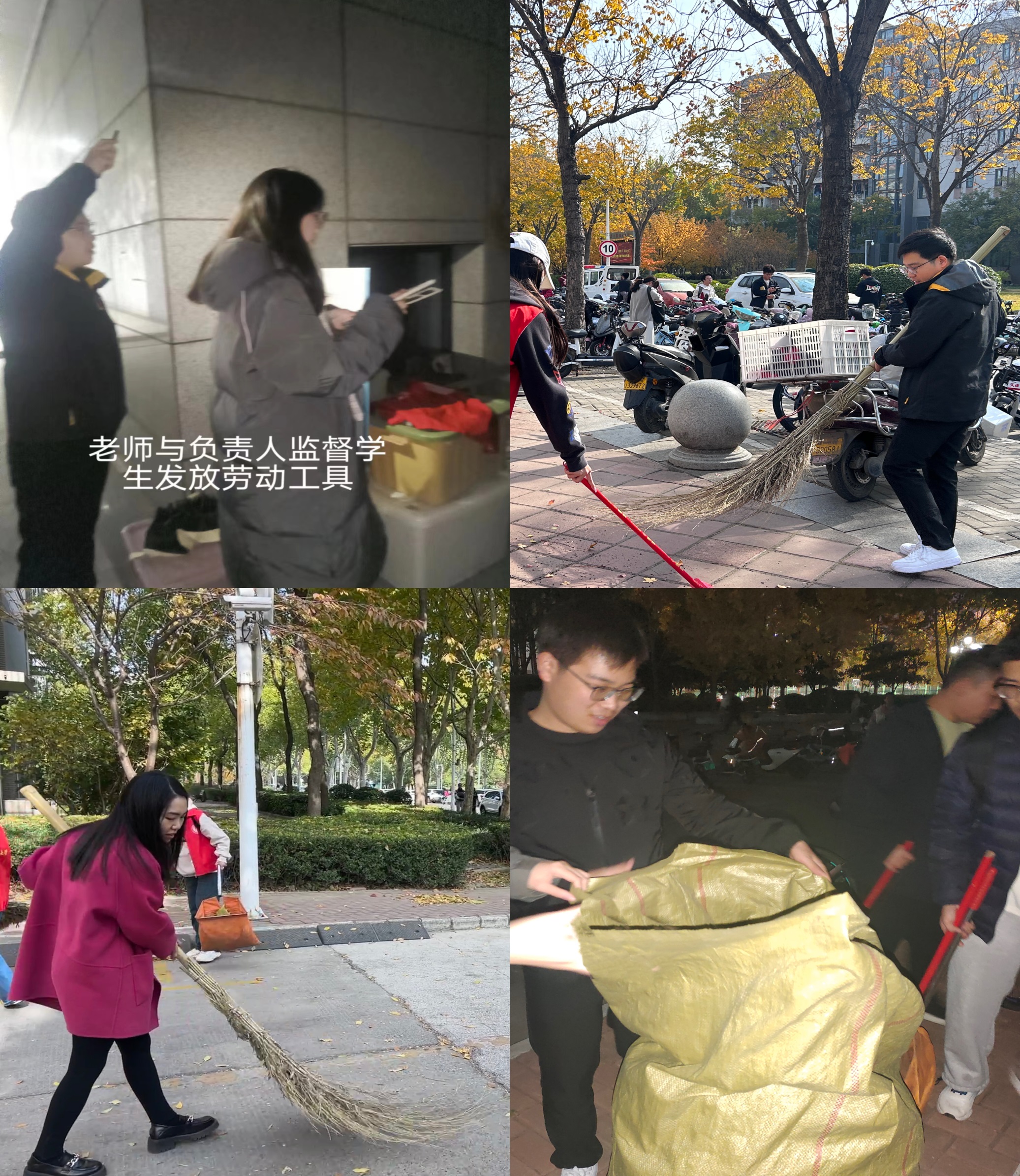 本次劳动教育实践课程以清洁校园道路、美化校园环境为主要内容。在正式开课前,薛波老师对学生进行劳动教育专题培训,全面介绍与劳动教育实践课程相关的各项事宜,帮助学生树立正确的劳动观。在劳动过程中,师生手持扫帚、垃圾袋等工具,前往指定区域进行清扫。武仕祯老师与薛波老师身体力行,深入到劳动实践当中,给予学生实质性的建议与帮助。寒风凛冽,在指导老师带领下,同学们各司其职、配合默契,积极清扫落叶与垃圾,不因任务繁重而放过细微之处,亦不因集体合作而懈怠一刻。最终,通过大家的共同努力,整个校园焕然一新。这次劳动经历无疑将深深植根于学生们的脑海之中,成为他们宝贵的成长经历。