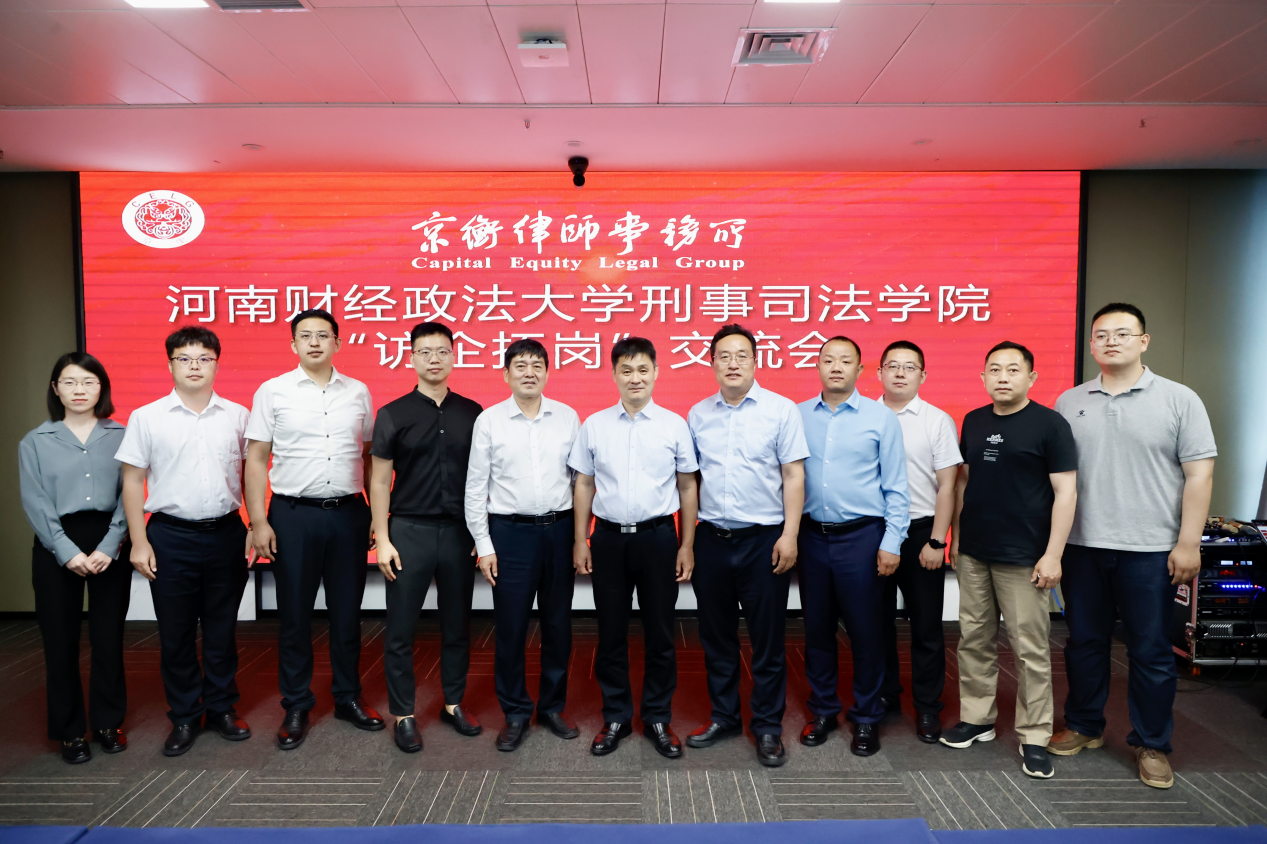 2023年5月20日下午,学院院长姜保忠、副院长陈在上、党政办主任朱贺、研究生辅导员陈凌剑一行赴浙江京衡(郑州)律师事务所开展调研和访企拓岗活动。浙江京衡(郑州)律师事务所主任张新士、党支部书记盛经邦等出席了座谈会。京衡郑州所主任张新士律师进行致辞,对姜保忠院长、陈在上院长及河南财经政法大学专家学者参会表示热烈欢迎。
