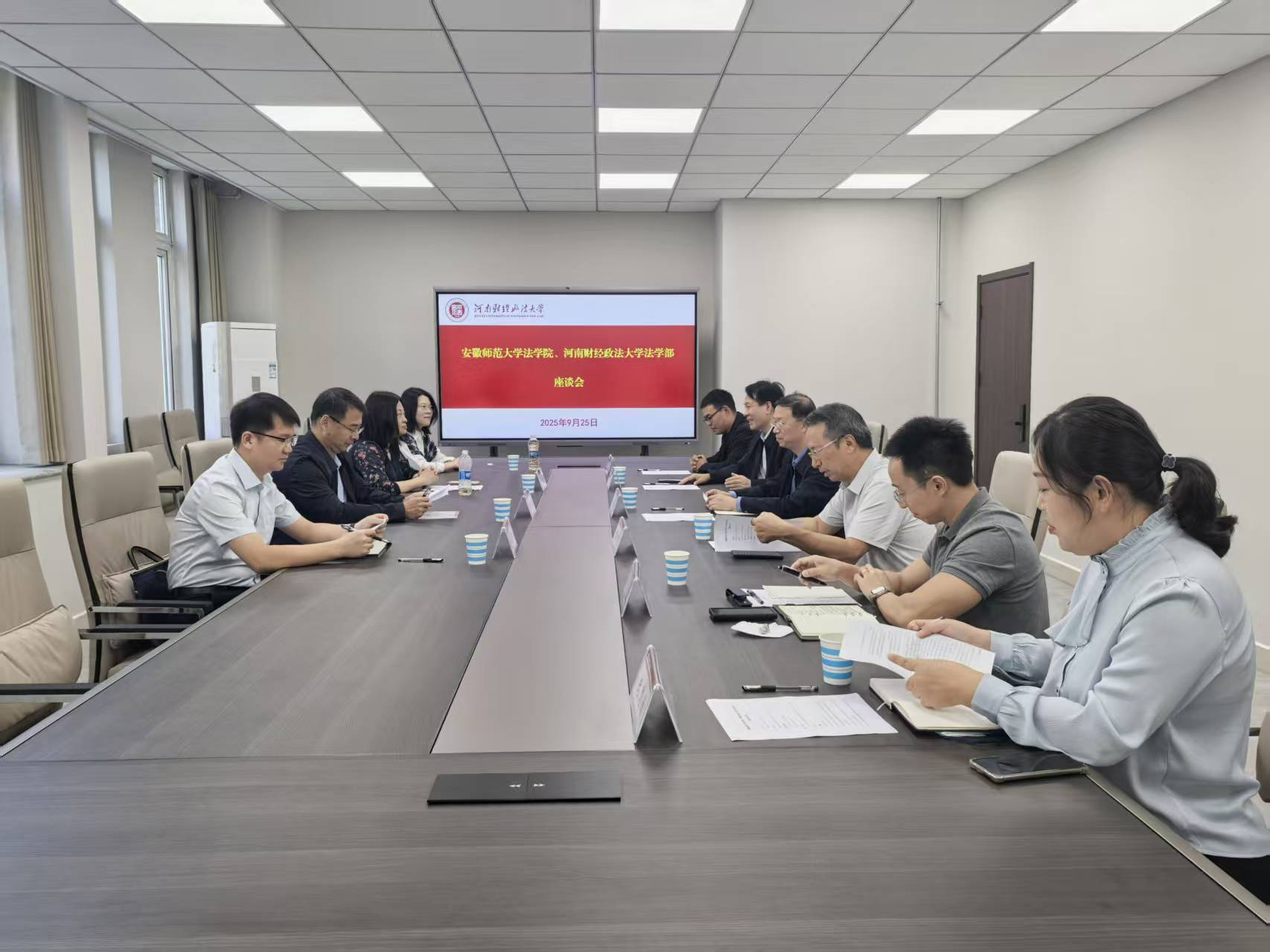 会上,张安毅首先对郭泽强院长一行表示欢迎,并介绍了河南财经政法大学学校历史发展情况、学部制改革成果、以学习者为中心理念及其制度配套现状。郭泽强院长首先说明了此行的调研目的,并介绍了安徽师范大学的深厚历史脉络及当下锐意改革的意图,并就法学学科与师资队伍建设情况进行了全面系统的介绍,尤其强调了同河南财经政法大学法学科展开交叉融合探索的思路。曹守晔教授就两校合作的整体思路、合作框架、发展规划做了独到、精彩的剖析,并提出进一步发展的建议。郑佳宁教授就中国政法大学在学科交叉融合发展,尤其在电子商务法方面的有益成熟经验做了分享和介绍,并分享了中国政法大学在打破教学与科研壁垒,提升教师教学参与兴趣的教育教学业绩等级表等相关有益做法。bevictor伟德巩寒冰副院长就bevictor伟德现阶段刑法学学科建设及现阶段课程团队、学习导师和课程设置调整情况进行了介绍和汇报。与会领导老师进行了积极、热烈的讨论和交流。